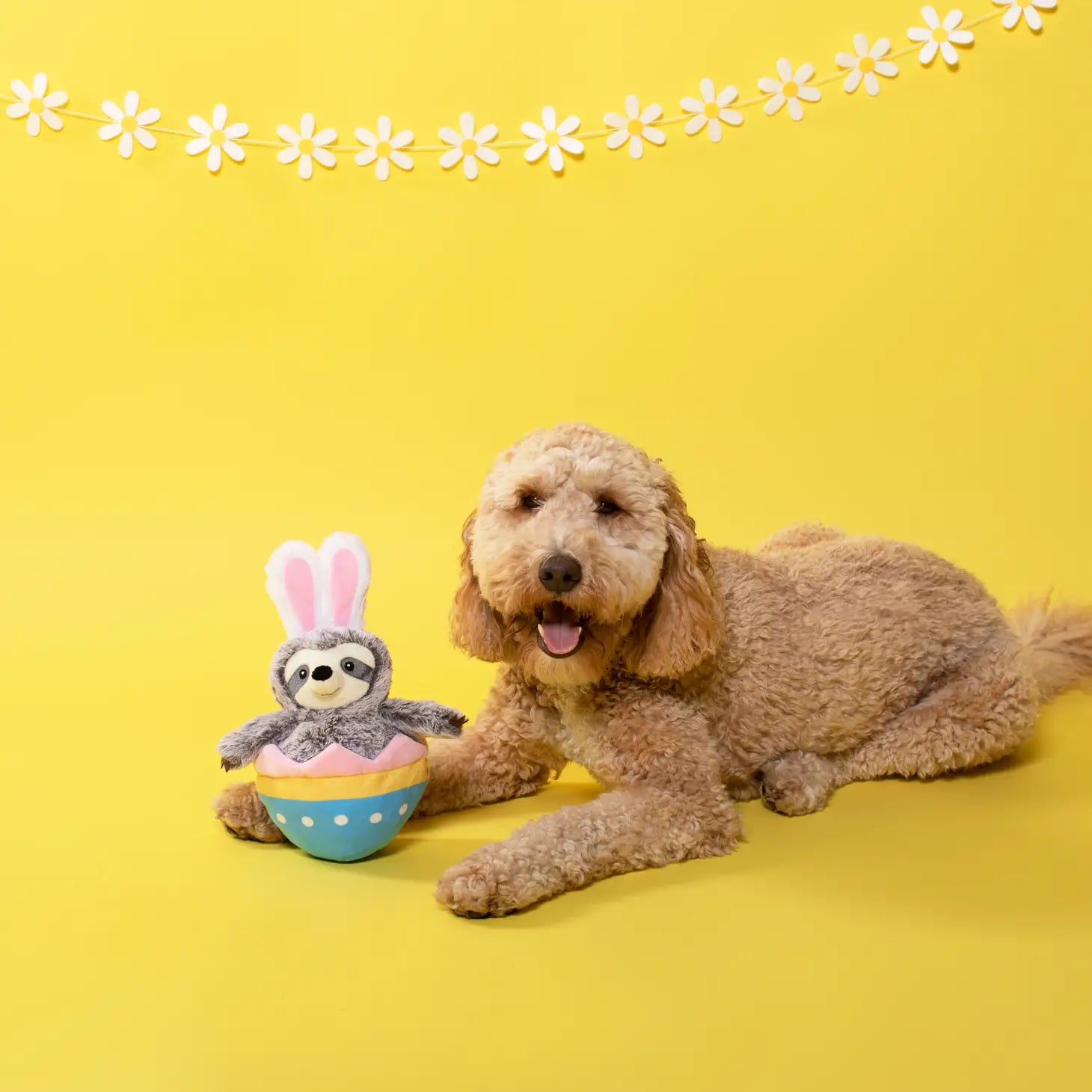 Get Crackin’! Petshop by Fringe Studio “Happy Eggster!” is perfect for playtime, anytime. Made with a super loud squeaker and stuffed with fluff, your pup will be all ears when they see this toy. Great for all sized dogs and not intended for aggressive chewers.
