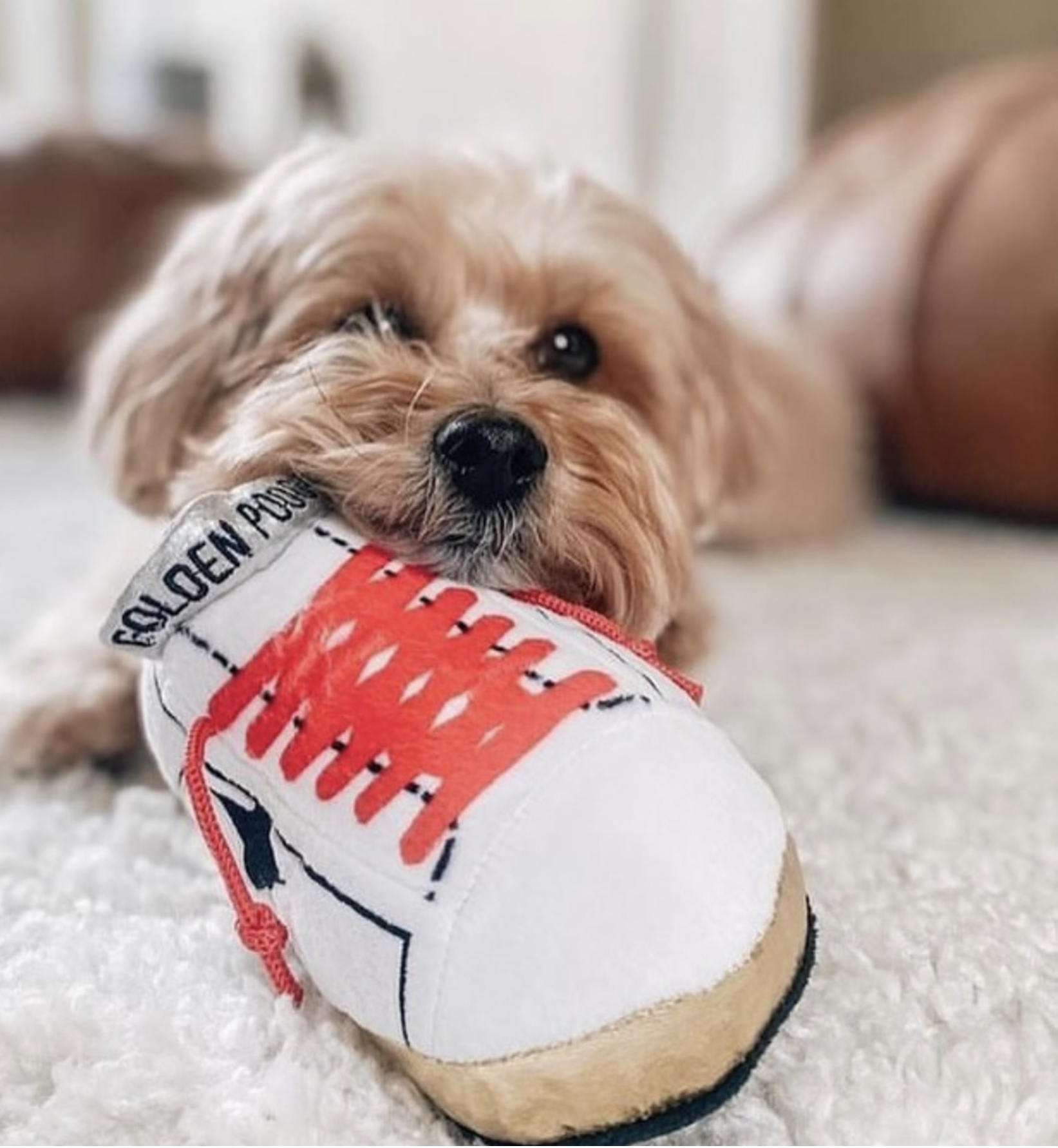Get the distressed sneaker toy with soul! Our parody take on the iconic tennis shoe is not only jaw-dropping, it’s also drool-inducing! Just like the original, the plush white exterior is sure to become more authentic-looking with age. Unlike the original, this one features a delightful squeaker inside that will instantly make it a favorite with your furry fashionista!