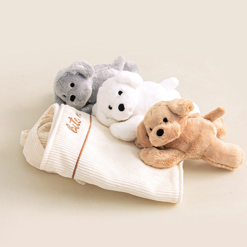 A truly engaging and heartwarming toy for your furry companion. This product features an adorable dog plush with an additional blanket that comes with nose pockets, perfect for hiding treats. Wrap the blanket around your dog, and watch as they use their wit and wiggling skills to uncover the hidden goodies. The interactive play not only keeps them entertained but also provides mental stimulation and rewards their problem-solving abilities. With its charming design and treat-seeking adventure, this toy captures precious moments as your dog carries "another dog" with them. Give your pet the joy they deserve and make playtime extra special with this adorable and fun-filled toy!