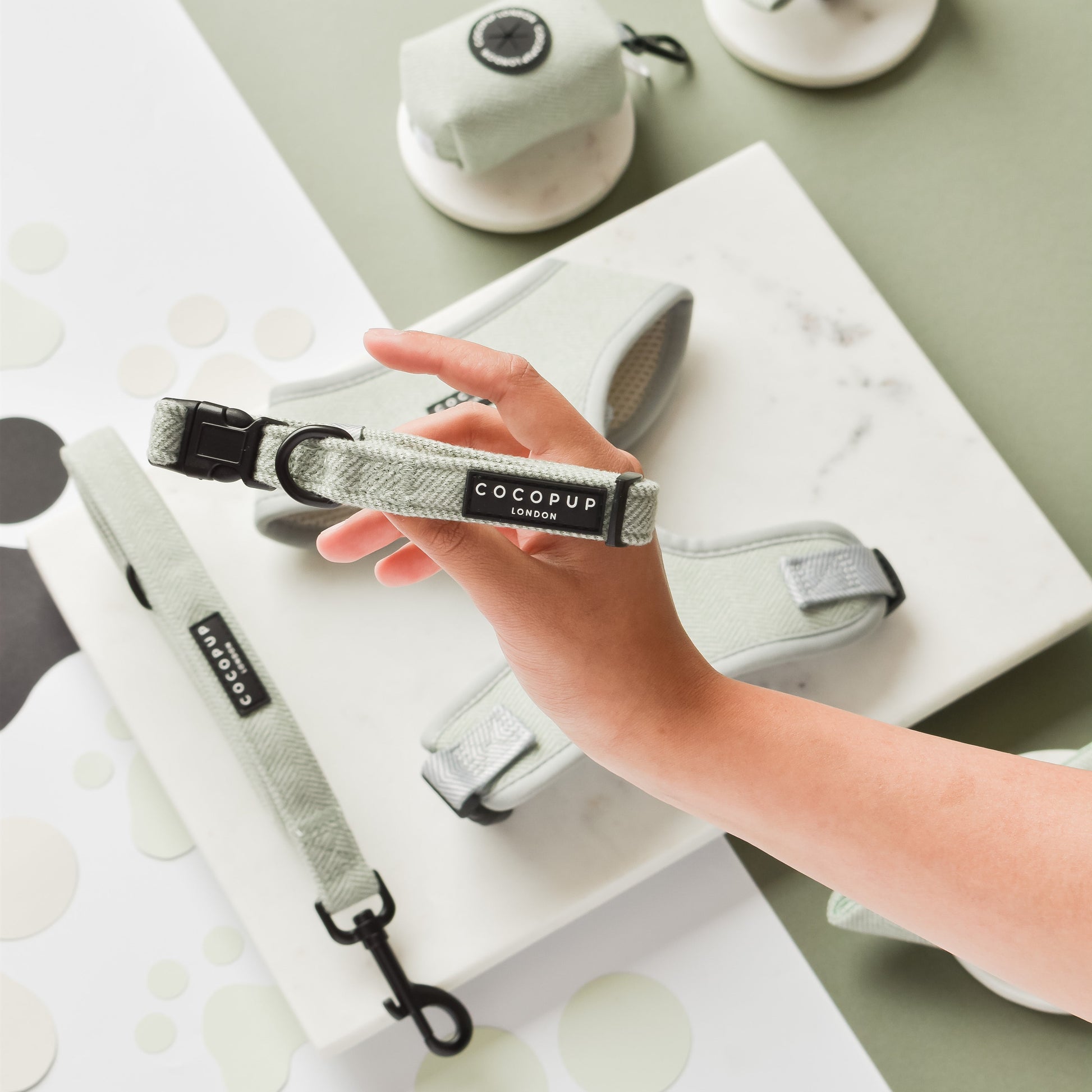 Get your dog ready for the countryside with our Sage Tweed Collar. Made from herringbone fabric in a charming sage green colour, this collar is perfect for dog walks. Plus, the safety lock feature will ensure your furry friend stays secure. A must-have for any country-loving pup!