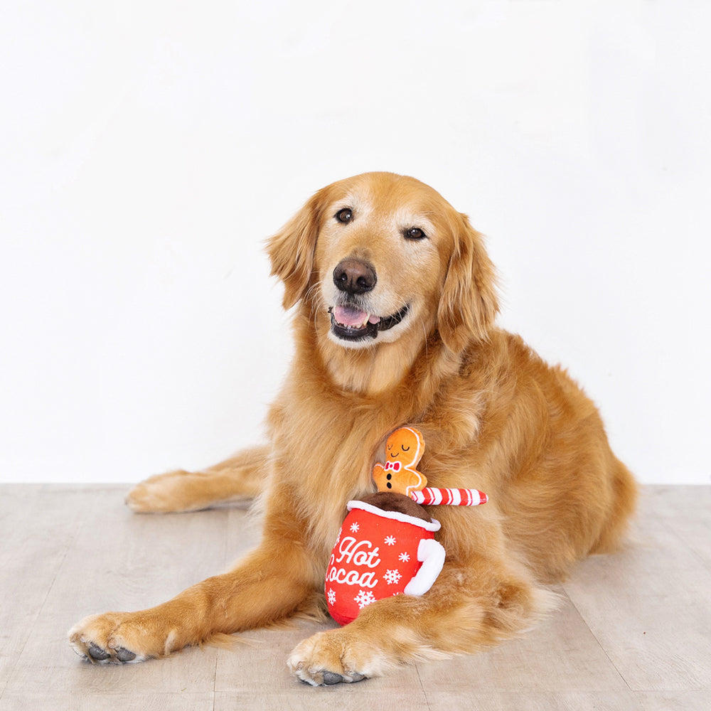 Let's get cocoa-zy! Our “Warming up the Holidays” plush toy is perfect for playtime, anytime. Made with a super loud squeaker and crazy crinkle paper, your pup will have the hottest holiday toy on the block.